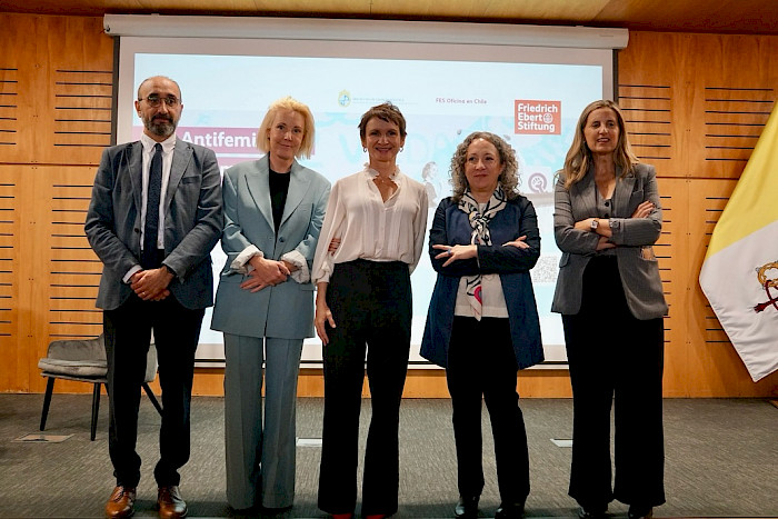 "Actitudes antifeministas en América Latina" es el título de un nuevo estudio de la Fundación Friedrich Ebert (FES) a cargo del profesor del Instituto de Ciencia Política UC, Cristóbal Rovira, quien presentó los resultados de esta medición en encuentro realizado en el auditorio de la Facultad de Historia, Geografía y Ciencia Política UC, en el campus San Joaquín, este martes 8 de abril.