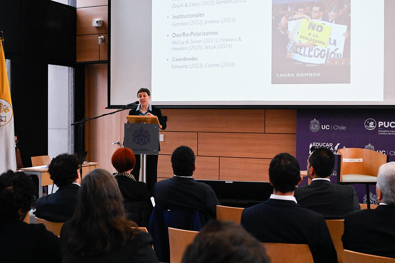 La conferencia inaugural estuvo a cargo de Laura Gamboa, académica de la Universidad de Notre Dame, quien abordó los procesos contemporáneos de erosión democrática en América Latina.