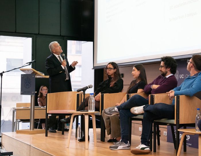 Patricio Bernedo explicó que la UC abrió una reflexión interna sobre cómo reforzar la formación ciudadana de sus estudiantes, a partir de dos señales preocupantes: una encuesta institucional mostró que menos de un tercio de los egresados percibe haber recibido una preparación significativa en este ámbito, mientras que, en paralelo, se observa un aumento de la desafección democrática entre jóvenes de 18 a 24 años en Chile.