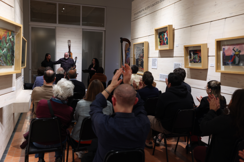 “Es realmente alucinante escuchar un concierto estando sentado al lado de las arpilleras de Violeta Parra, y viendo el guitarrón de Violeta Parra ahí, detrás de los músicos. Sería deseable replicar este tipo de actividades en la universidad, ya que este concierto es justo lo que la Universidad Católica quiere al tener un espacio como Casa Violeta Parra: además de exhibir su obra gráfica, contar además con una agenda de activación de la sala”, indica el arquitecto.
