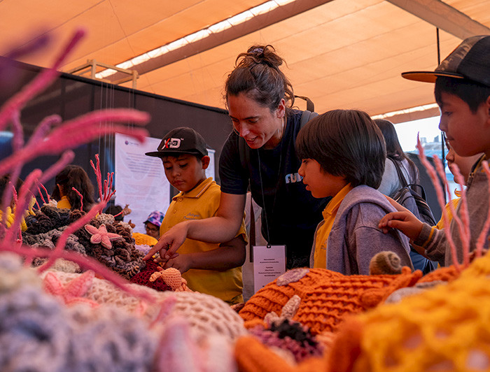 Celeste Kroeger dice que la exposición -que ocupaba una vistosa esquina en el Paseo por la Ciencia- genera interés transversal, en personas de distintas edades. “En algunos casos son los colores y las formas lo que llaman la atención; en otros el hecho de que esté representando organismos de la costa chilena, específicamente en nuestros mares semi profundos que, como ya casi no hay luz, muchas veces pensamos que son carentes de color. También genera mucho interés en personas mayores que tejen o que tienen alguna relación con el tejido”, explica la bióloga marina.