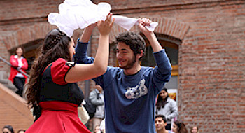 Y precisamente Bastián, junto a Catalina Valenzuela, alumna de Pedagogía General Básica, fueron los protagonistas del concurso de cueca, una de las actividades más tradicionales y esperadas de la Fiesta de la Chilenidad, del cual esta pareja de amigos fueron los ganadores. Luego de bailar varios pies de cueca, Catalina y Bastián deleitaron a los asistentes y al jurado, compuesto por los profesores Ana María Martínez, Ana Soledad Vargas y Ricardo Rodríguez, junto a Constanza Carmona, integrante del Grupo Selectivo UC de Folklore. Según Catalina, ella baila cueca desde niña y, junto a Bastián, participan en un club foklórico hace tres años. "Bailamos danzas tradicionales de Chile durante todo el año y me parece súper bueno que se abran estos espacios y que haya más cultura chilena en septiembre”, destacó.