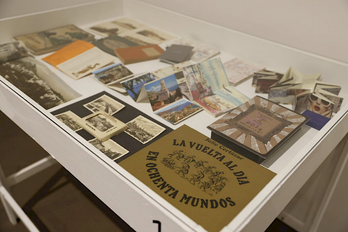 “Es el viaje en un tranvía, en un tren, en el metro, en un bus y caminando también: el viaje en distintos tipos de embarcaciones. En la muestra hay una maleta que es clara protagonista, con pasaportes o libros de artistas que juegan esta idea de viajar, y esa temática está muy ligada a la esencia de la actual exposición en la Sala Huidobro, que también se vincula a distintos medios de transporte, y rememora los viajes transatlánticos del escritor”, dice Marcela Labraña, quien también fue la curadora de la exposición “Ver y Viajar: Huidobro en ruta”.