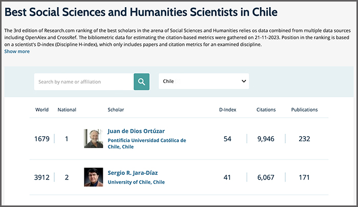 De hecho, este 2024, según el reconocido portal británico Research.com, el académico e investigador del Departamento de Ingeniería de Transporte y Logística de la UC y del ISCI, sigue manteniendo el top 1 del área de Ciencias Sociales y Humanidades a nivel nacional, lugar que conserva ya por varios años. Los indicadores que considera este ranking son el número de publicaciones y citas en artículos, entre otros factores.