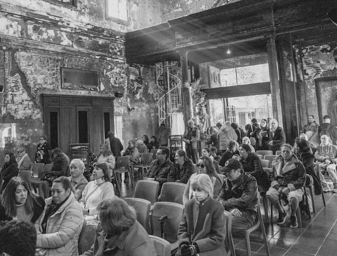 La Veracruz también alojó un lanzamiento editorial: aquí se presentó el libro Contra viejas superficies, sobre Gordon Matta-Clark, escrito por Ariel Richards. El artista, arquitecto y primogénito de Roberto Matta fue bautizado en la parroquia en 1945 y su recuerdo volvió a unir, de forma providencial, la historia del arte contemporáneo con este edificio de aires neoclásicos y estética siniestrada. Al igual que la obra lumínica de la artista Teresa Cruz, Papeles de Luz, inaugurada hace pocas semanas y que estará ahí hasta el uno de agosto.