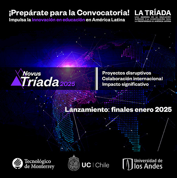 La convocatoria Novus Tríada es un fondo concursable al que concurren las tres universidades que conforman la alianza "La Tríada": el Tecnológico de Monterrey (México), la Universidad de los Andes (Colombia) y la Pontificia Universidad Católica de Chile (UC).