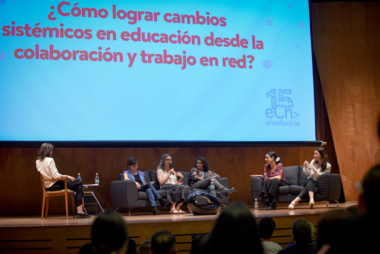 La actividad también contó con un conversatorio sobre “¿Cómo lograr cambios sistémicos en educación desde la colaboración y trabajo en red?”, moderado por la periodista Angélica Bulnes y conformado por las expertas Susana Claro, co-fundadora de Enseña Chile y académica de la UC; Claudia Trillo, directora del SLEP Llanquihue; Goighet Andrade, directora del Liceo Bicentenario Minero Juan Pablo II de Antofagasta; Paula Covarrubias, directora de Extensión de Enseña Chile y Marcela Bustamante, gestora de Transparencia y Ciudadanía de BCI.