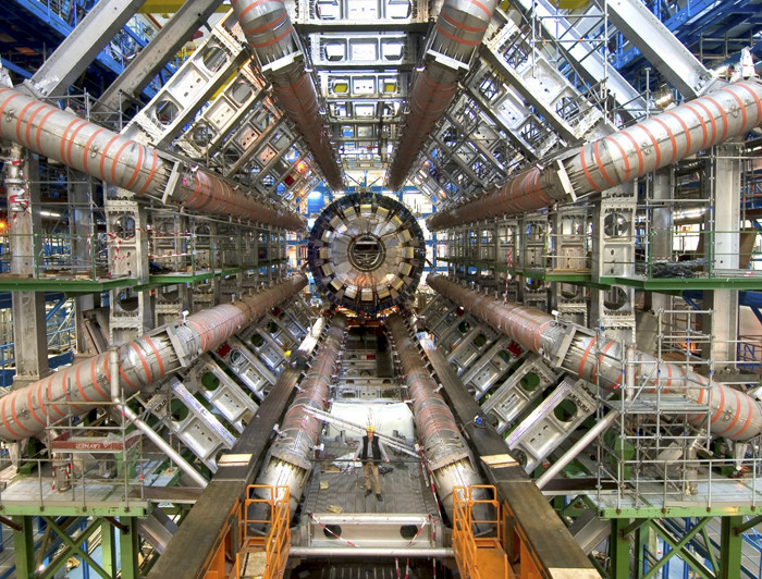 ATLAS es uno de los experimentos instalados dentro del LHC. Está compuesto por una especie de cilindro acostado en el eje del acelerador LHC en cuyo centro colisionan las partículas.