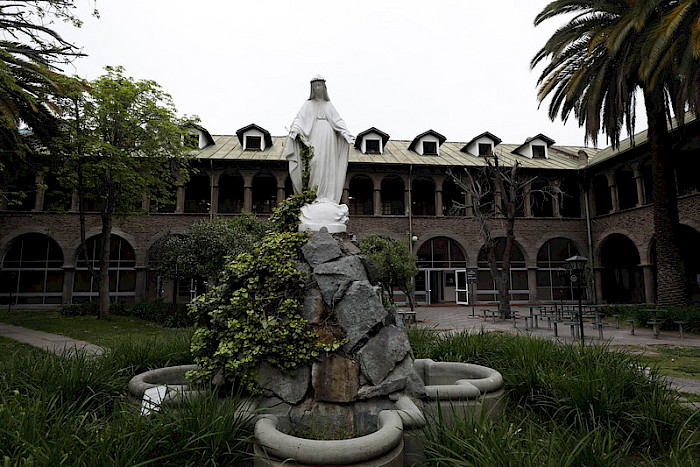 Religiosas, sacerdotes, estudiantes y profesores han pasado durante décadas por este patio del Campus Oriente. La centralidad de la estatua de María en este lugar congrega con frecuencia para rezar y también conversar.