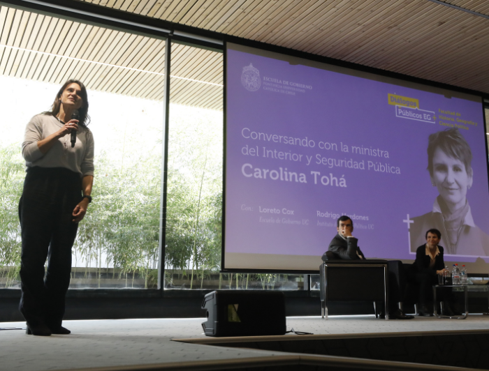 Además, destaca que la escuela tiene la misión de promover la vocación por lo público dentro de toda la comunidad universitaria integrada por los estudiantes, académicos y funcionarios: «Hay un mandato claro de parte de rectoría de despertar esa inquietud». La primera iniciativa en esta línea es Diálogos Públicos EG+, cuyo objetivo es acercar a los alumnos y al resto de la comunidad UC a los actuales tomadores de decisiones en la gestión de lo público y en las políticas públicas. El ciclo fue inaugurado por la ministra del Interior y Seguridad Pública, Carolina Tohá, actividad que organizaron en conjunto con la Facultad de Historia, Geografía y Ciencia Política.