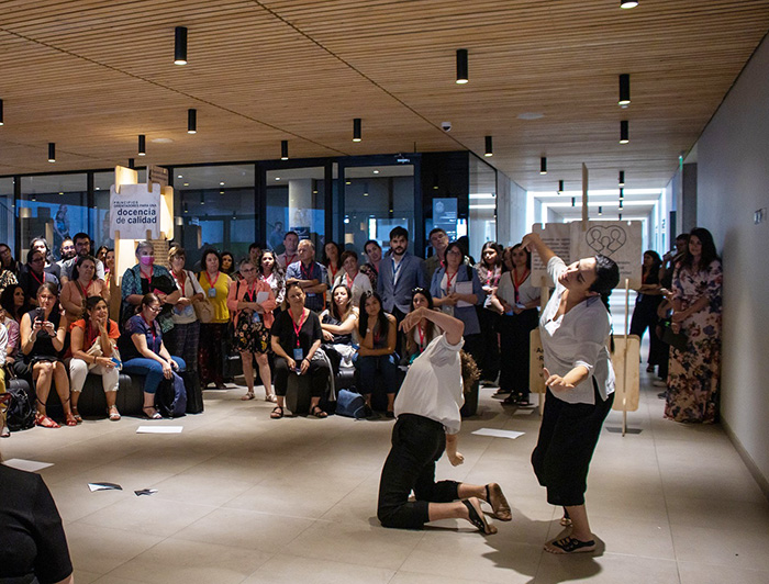 La instancia también contó con 16 ponencias de docentes UC y de otras universidades chilenas, así como una intervención teatral de la profesora Gala Fernández, para presentar la actualización de los principios orientadores de la docencia UC.