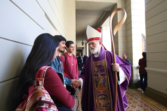 Al término de la eucaristía -señala el rector- en forma muy cercana destacó y agradeció de manera especial a los integrantes del coro por su participación y nos pidió a todos tener presente dos tareas para este año: a los profesores preocuparse y rezar por los alumnos y a los estudiantes hacer lo mismo por sus profesores. “Tareas muy relevantes al momento de construir comunidad”, dice. Antes de retirarse de la universidad, y debido a la presencia de unas alumnas que portaban letreros de protesta por casos de abusos, -a su parecer no resueltos por la institución-, se sentó a dialogar con actitud de escucha y cercanía. “Este gesto lo valoramos en la universidad de manera especial”, manifiesta Sánchez.