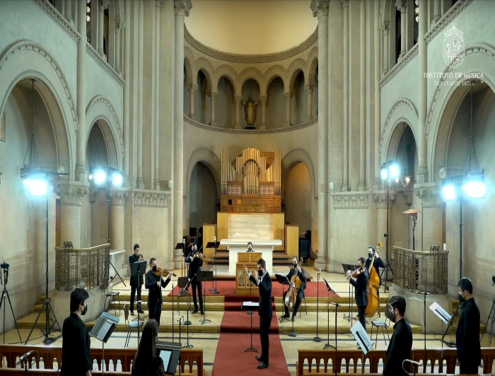 photo_camera La primera entrega se emitirá este domingo, a las 18:00 horas, en Musica.uc.cl. Los siguientes conciertos se transmitirán en vivo y en directo, y serán dirigidos por Felipe Ramos Taky, Paula Torres, Alejandro Reyes, Rodrigo del Pozo y Sergio Candia. Se sumará por primera vez el conjunto estable de Música UC Estudio MusicAntigua. Créditos fotográficos: Música UC.