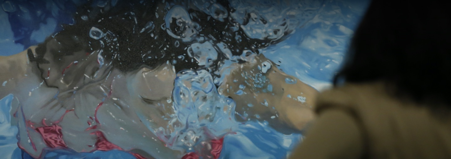 A través de una técnica perfeccionista con la que recrea, desde grandes imágenes de una piscina pública a pequeños detalles de cambios de luz sobre los pliegues del oleaje, se va incorporando el lado más experimental de la artista: esa atracción por el agua y sus tonalidades, evoca desde la más pura calma a verdaderos instantes de asfixia.