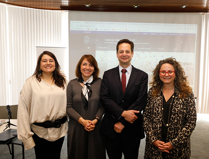 Es en este contexto en el que se lanzó, a fines de septiembre pasado, la plataforma Ciencia Abierta en la UC -diseñada por la Dirección Digital, desarrollada por Bibliotecas y presentada por Ana Lucía Keim, subdirectora de Tecnologías de la Información y Desarrollo Digital de Bibliotecas UC- que tiene como propósito contribuir a establecer las condiciones de infraestructura digital institucional para la práctica de la ciencia abierta en nuestra universidad, aspirando a ser una plataforma estandarizada, libre, independiente, inclusiva e interconectada.