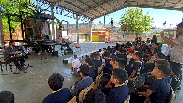Francisca Valenzuela, productora de la obra, relata que se llevó la obra a escuelas con alto índice de vulnerabilidad y a comunidades con poco acceso a la cultura. “El corazón del teatro itinerante tiene que ver con recorrer espacios que comúnmente no tienen acceso a este tipo de actividades, y como esta obra está dirigida a la primera infancia lo lógico era llevarla a escuelas que de lo contrario no tendrían la posibilidad de verla. En Campus Oriente tuvimos la primera función e invitamos al jardín infantil del campus, al Centro UC para el Síndrome de Down y al Jardín Infantil Dinopola del Sol de Padre Hurtado, quienes viajaron desde muy lejos para conocer el campus y ver la obra”.