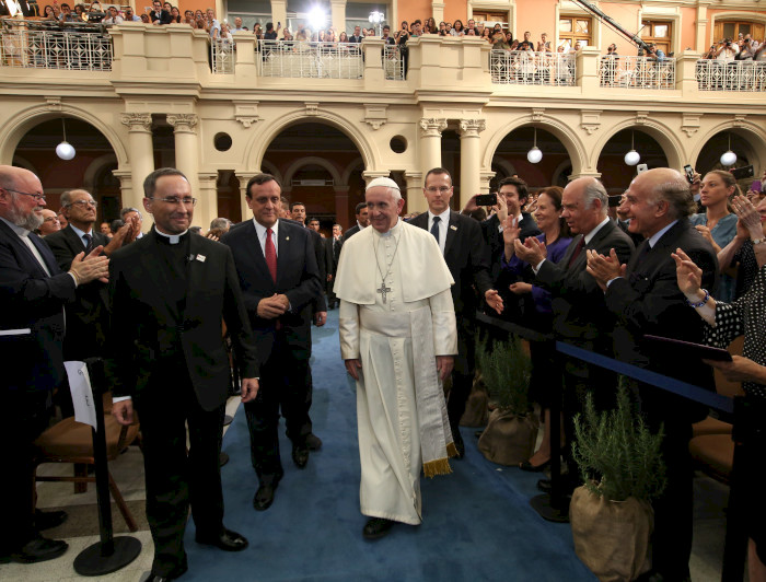 Francisco se refirió a desafíos que el mundo de la educación debe asumir con respecto a la convivencia nacional. “La convivencia nacional es posible —entre otras cosas— en la medida en que generemos procesos educativos también transformadores, inclusivos y de convivencia. Educar para la convivencia no es solamente adjuntar valores a la labor educativa, sino generar una dinámica de convivencia al interior del propio sistema educativo. No es tanto una cuestión de contenidos sino de enseñar a pensar y a razonar de manera integradora. Lo que los clásicos solían llamar con el nombre de forma mentis”.