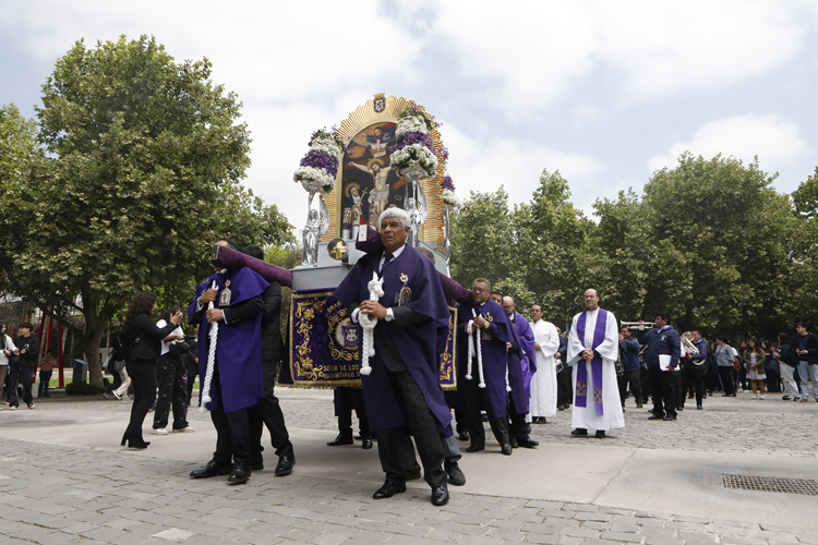De morado se tiñó el Templo del Campus San Joaquín, el pasado 23 de octubre, en honor al Señor de los Milagros, Patrono de la Espiritualidad Católica del Perú, color que se relaciona con la penitencia y con esta figura religiosa. De esta manera se inició la “Semana de la Interculturalidad en la UC: Integrando creencias y saberes”, iniciativa del Programa de Interculturalidad UC.