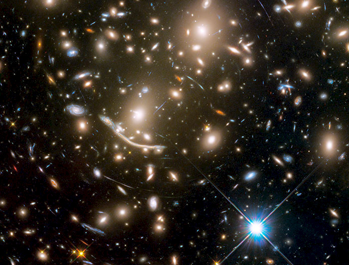 Fue este cúmulo de galaxias el que generó el efecto de lente gravitacional, que corresponde a una especie de zoom galáctico, un efecto de amplificación natural causado por los campos gravitacionales de objetos masivos. Esto permitió que la forma espiral de la galaxia Arco del Dragón se transformara en una figura alargada, como si fuese un “espejo de feria” cósmico.
