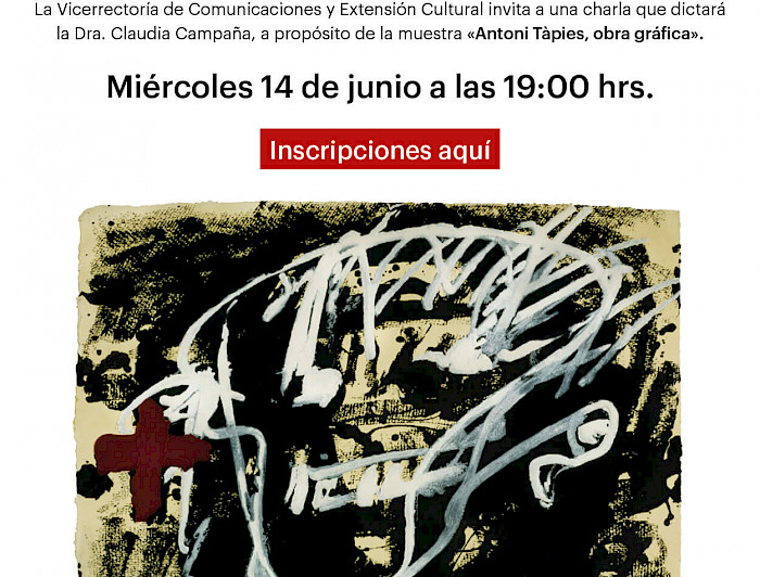 Con la primera muestra individual del pintor catalán Antoni Tàpies disponible hasta el 30 de junio en Chile, la académica de la Facultad de Artes UC, Dra. Claudia Campaña, tendrá una ponencia gratuita este miércoles 14 de junio, a las 19:00 horas, orientada a la obra de uno de los representantes españoles más trascendentales del arte informal.