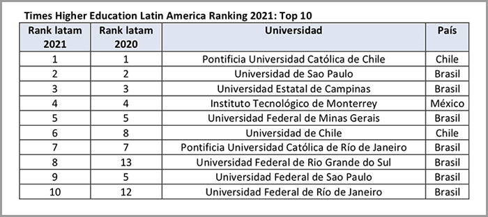 Más información sobre el ranking en: https://www.timeshighereducation.com/world-university-rankings/2021/latin-america-university-rankings