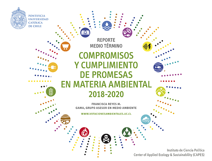 “Compromisos y Cumplimiento de promesas en materia ambiental 2018 - 2020” es una publicación de la Iniciativa Votaciones Ambientales del Grupo Asesor en Medio Ambiente, GAMA, integrado por diez académicos de distintas áreas disciplinarias de la UC, perteneciente a siete facultades e institutos de la UC.