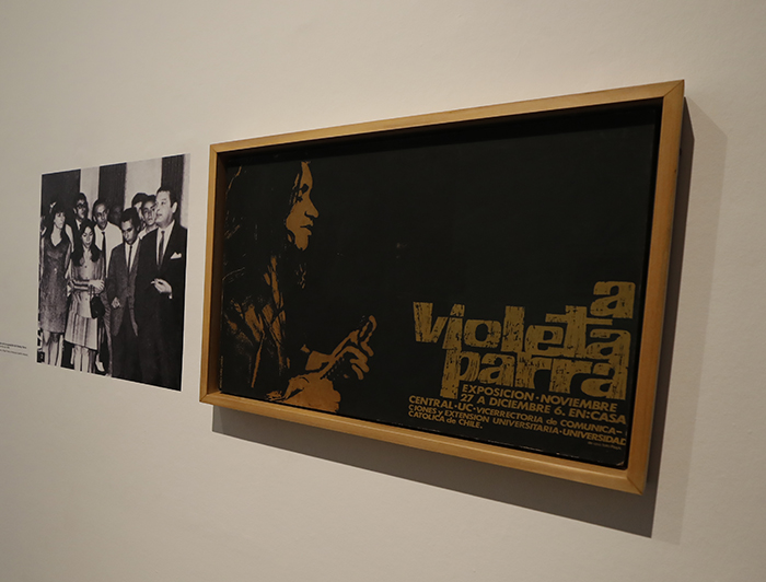 “En esta exposición tenemos un afiche de la muestra que realizó el rector Fernando Castillo Velasco, que fue un homenaje póstumo, el año ‘68, con arpilleras de Violeta Parra. Ese afiche Isabel Parra lo guardó hasta hoy, que tras una restauración ha sido enmarcado: ahora vuelve al Centro de Extensión UC, y está al inicio de Violeta Inédita. En el catálogo de esta muestra también hay un inserto con la invitación que se hizo para ese homenaje póstumo. Es algo muy simbólico para nosotros, porque, de alguna manera, Violeta expuso aquí en el ‘68 y ahora regresa a la Universidad Católica después de 54 años. Este es un lazo académico y artístico que viene de hace mucho tiempo”, dice Milena Rojas.