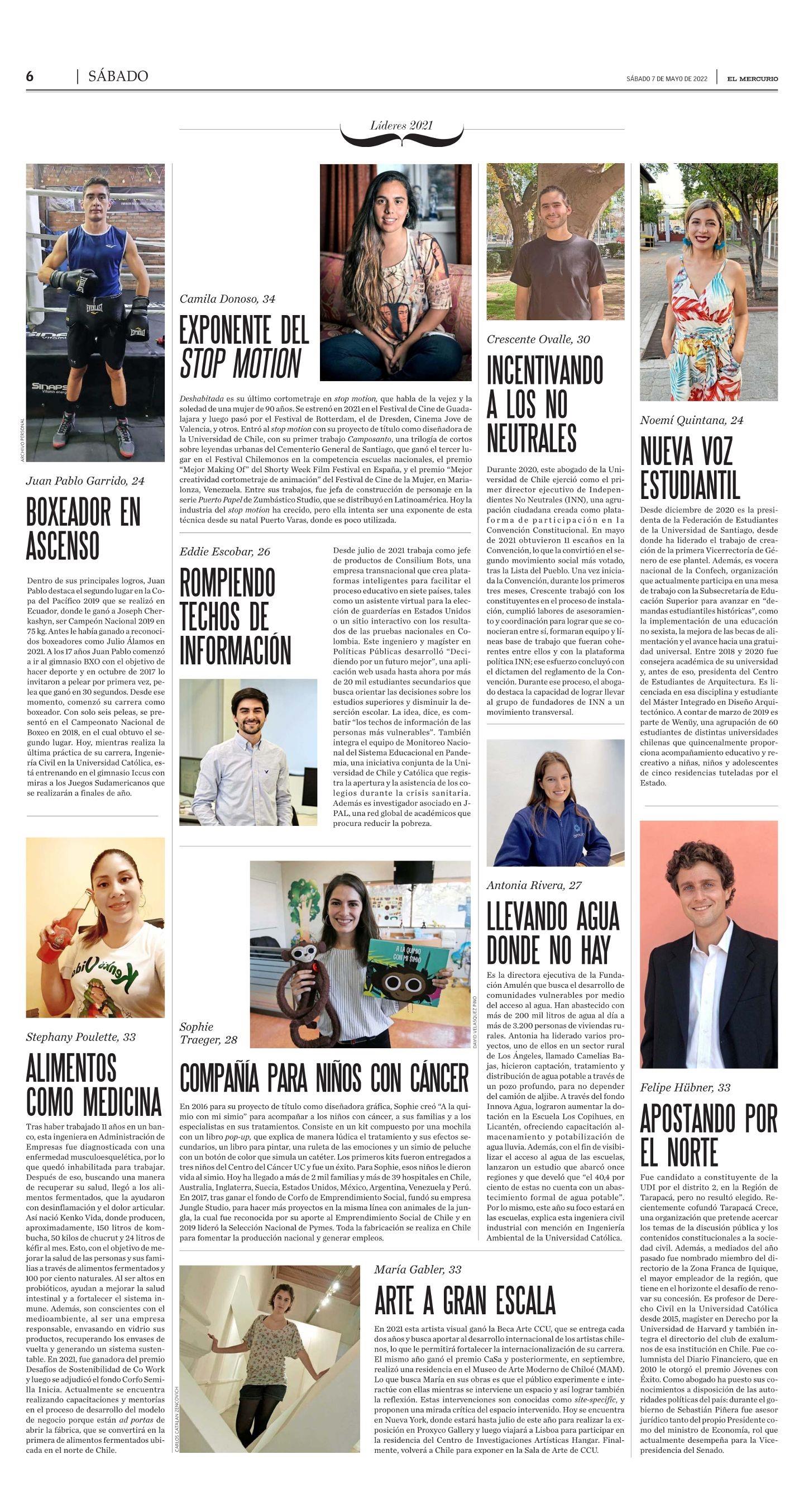 Aparecer entre los 100 jóvenes líderes de la Revista Sábado de El Mercurio hace unas semanas le entibió el espíritu. "Fue un buen reconocimiento a mi trayectoria, muy esforzada. He peleado con grandes profesionales, les he ganado prácticamente a todos, a grandes exponentes como Julio Álamos y Joseph Cherkasyn", dice.