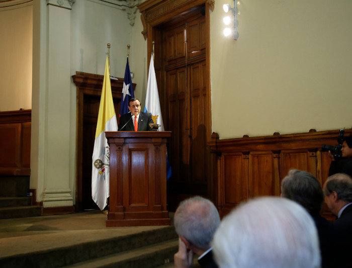 A una semana de la llegada del Papa Francisco a Chile y a la UC, la revista Humanitas preparó una edición especial para darle la bienvenida. La actividad de presentación de este número, contó con la presencia del nuncio apostólico, Monseñor Ivo Scappolo; el presidente de la Conferencia Episcopal, Monseñor Santiago Silva; el rector Ignacio Sánchez; el director de revista Humanitas, Jaime Antúnez; y el decano de la Facultad de Ciencias Sociales, Eduardo Valenzuela, entre otros.