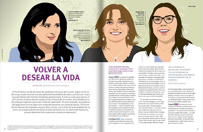 Por su parte, la editora de la revista, Sophie Berthet, comparte: “Me gustó mucho preparar el artículo “Cara a cara”. Moderar esa conversación siempre me ha parecido un privilegio porque me permite conocer ámbitos profundos de la vida de personas muy distintas; quienes, generosamente, participan y comparten sus puntos de vista que pueden ser muy académicos o muy emotivos, pero todos son testimonio del amor de Dios. Ahí se ve, muy patente, el diálogo entre la fe y la razón. En este número conocí a Ximena González, una enfermera que le enseña a sus alumnos que el cuidado de los pacientes es un acto de amor, a propósito del cuidado de los hijos que sí puede ser muy demandante, pero muy gratificante”.