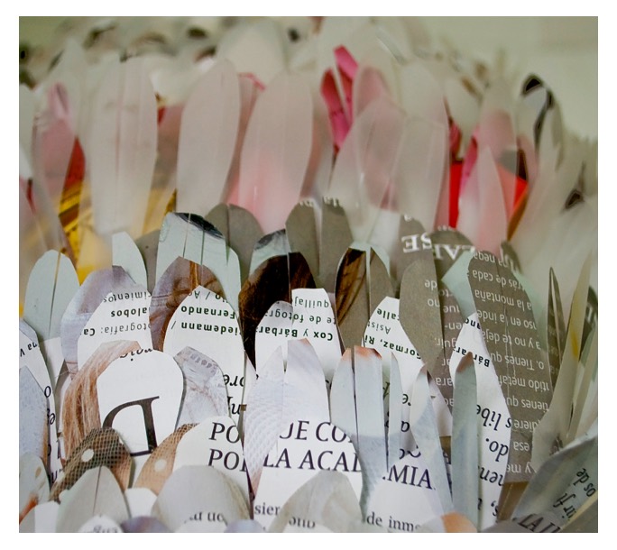 Estos hallazgos la llevaron a experimentar con elementos como arcilla, papel y azúcar. “Me interesa indagar en los lenguajes propios de los materiales”. Así lo afirmó en una entrevista a Las Últimas Noticias. Estos precisamente son los insumos que utiliza para confeccionar naturalezas muertas, inspiradas en las que se realizaron en los siglos XVI y XVII.