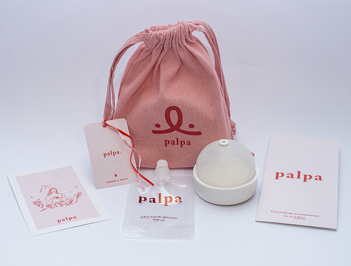 Palpa es una esponja de ducha que permite a la mujer practicar la técnica del autoexamen de mama. Este dispositivo de silicona cuenta con un masajeador en su parte inferior, el cual se llena de jabón líquido para simular la densidad de una mama real. Al usar esta esponja, se puede sentir un tumor que está presente en su interior, con el cual se puede entrenar la técnica y los movimientos para reconocer tumores, preparando a la usuaria para realizarse el examen con mayor seguridad.