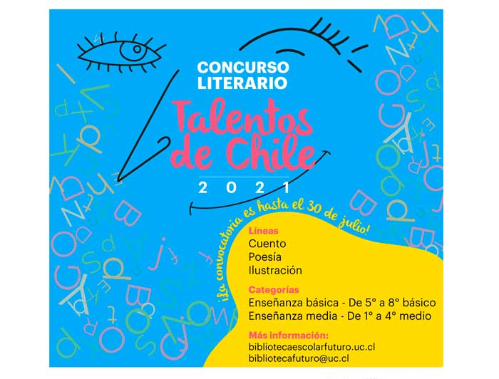 "Talentos de Chile", concurso escolar organizado por la Biblioteca Escolar Futuro, y "Palabras confinadas: retratos de una pandemia", concurso universitario organizado por la Dirección de Asuntos Estudiantiles y Ediciones UC, son dos instancias hoy abiertas para aquellos que disfrutan de la escritura cuentos o poesías y para aquellos que diseñan ilustraciones.
