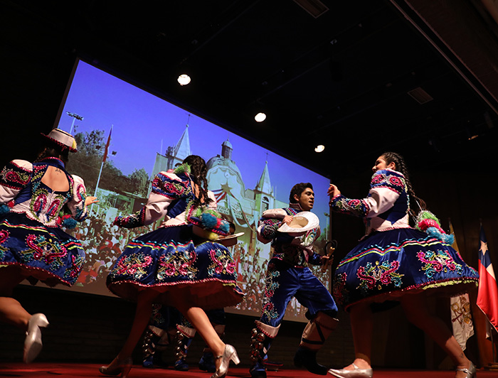 La ceremonia contó además con la presentación del conjunto folclórico Almas UC, que brindó a los estudiantes internacionales una demostración variada de danzas típicas chilenas.
