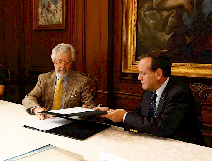 Un convenio de colaboración se firmó entre la UC y la Fundación Crítica y Celebración, en una ceremonia realizada en el Salón de Audiencias de la casa de estudios superiores, que fue encabezada por el rector Ignacio Sánchez y el presidente de la fundación, Cristián Undurraga.