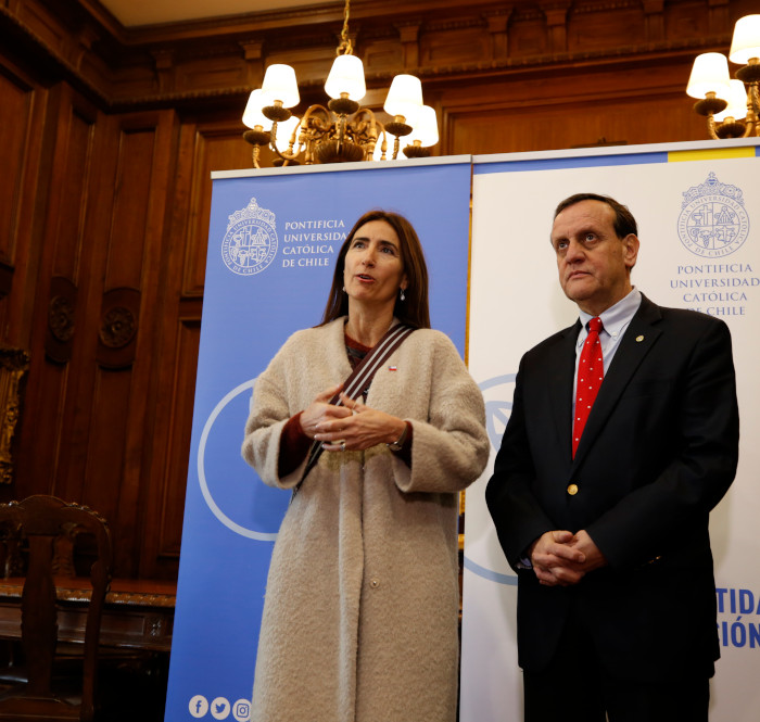 El profesor Juan Carlos Muñoz, director del Centro de Desarrollo Urbano Sustentable, informó a la Secretaria de Estado que el año 2018 fue lanzada la Cátedra de Sustentabilidad para abordar el tema desde el ámbito académico. “Este curso es parte del plan de formación general, puede ser tomado por alumnos de cualquier carrera porque pretende que los estudiantes se conviertan en agentes de cambio dentro de sus comunidades. Entrega una óptica interdisciplinaria. Ha sido un espacio de participación alegre y entusiasta, en el cual los estudiantes han manifestado que era algo que estaban esperando”, indicó.