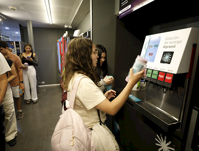 Este nuevo sistema de relleno (o refill) de bebidas de la empresa Algramo consiste en dispensadores de bebestibles con envases inteligentes reutilizables. De esta manera, estudiantes, académicos y funcionarios podrán disminuir el uso de plásticos de un solo uso en cada recarga.