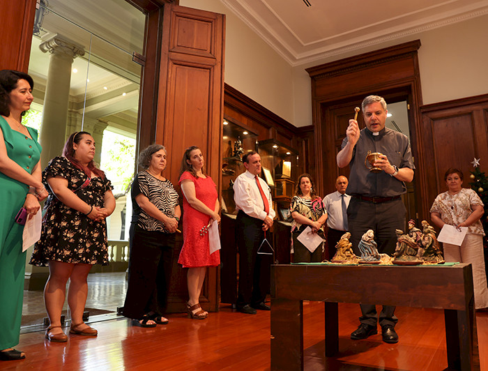 photo_camera Bendición pesebre en Rectoría junto al equipo. Foto: Dirección de Comunicaciones