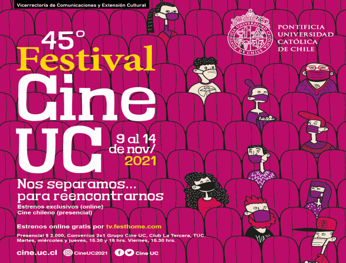 Tras un año marcado por la adaptación a la pandemia, el cierre y reapertura de salas de cine y una temporada de estrenos revitalizada durante este 2021, el 45° Festival Cine UC regresa este martes 9 de noviembre con una propuesta híbrida enfocada en el cine chileno para su muestra presencial y en estrenos exclusivos gratuitos en formato online.