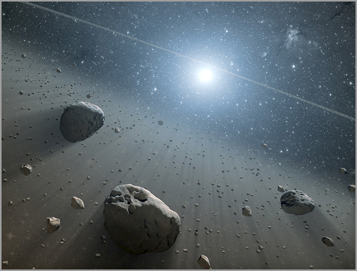 photo_camera Durante esta semana semana, el experto en estudios de los meteoritos y asteroides, Harry Y. McSween Jr., dará una charla sobre la exploración de asteroides realizada por la NASA. (En la foto una ilustración sobre un cinturón de asteroides encontrado en la estrella de primera magnitud Vega). Crédito: NASA/JPL-Caltech