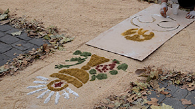 Con decorativas alfombras de aserrín se conmemoró Corpus Christi