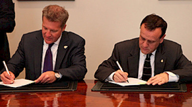 El rector Ignacio Sánchez, y el presidente ejecutivo (CEO) de CHRISTUS Health, Ernie Sadau, firmaron el acuerdo definitivo de asociación entre ambas…