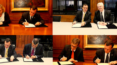 Con las máximas autoridades y representantes de dos instituciones australianas, una de África y otra de Europa, el rector Ignacio Sánchez firmó y estrechó las…